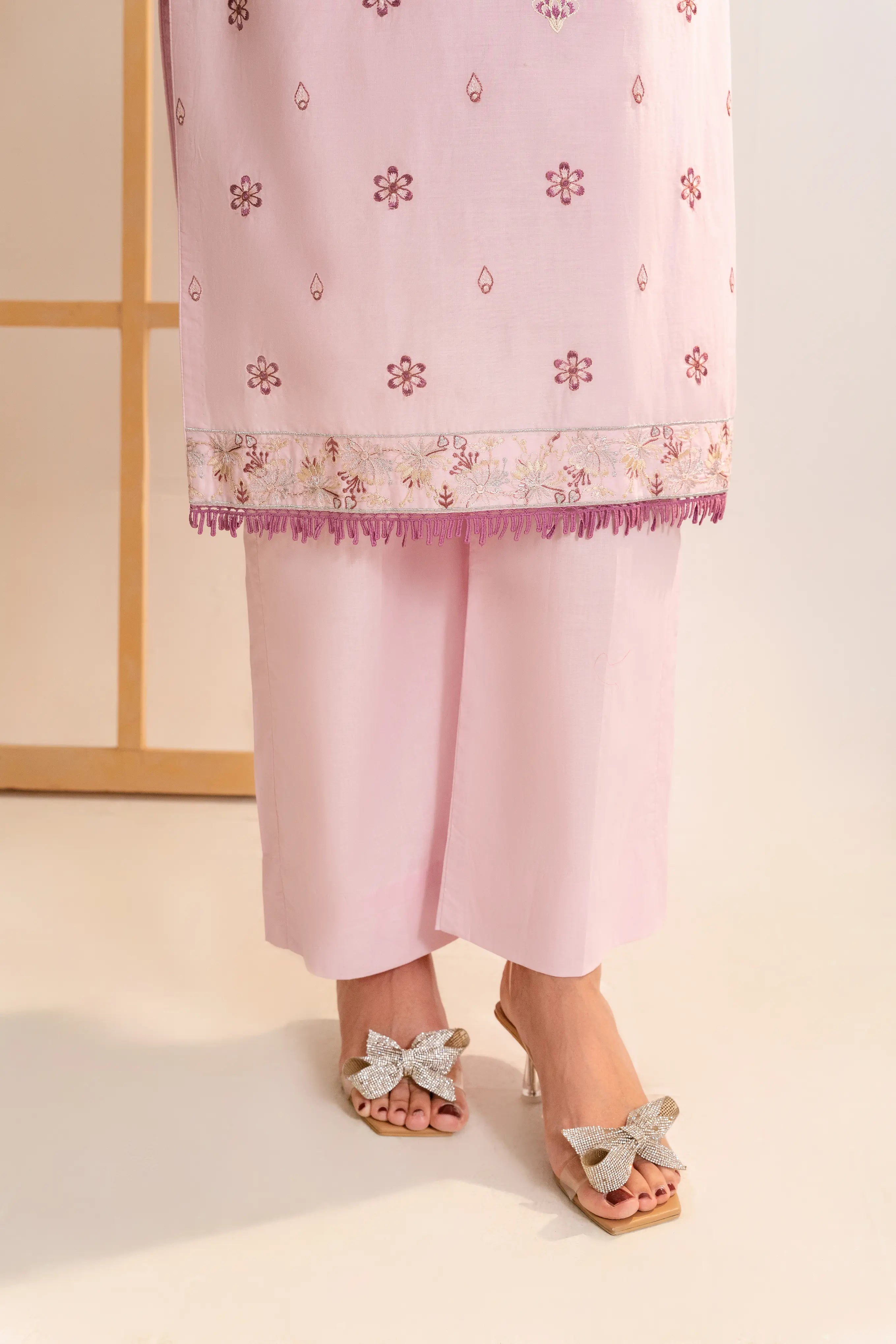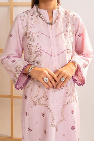 Dyed and fully embroidered cambric shirt with embroidered sleeves