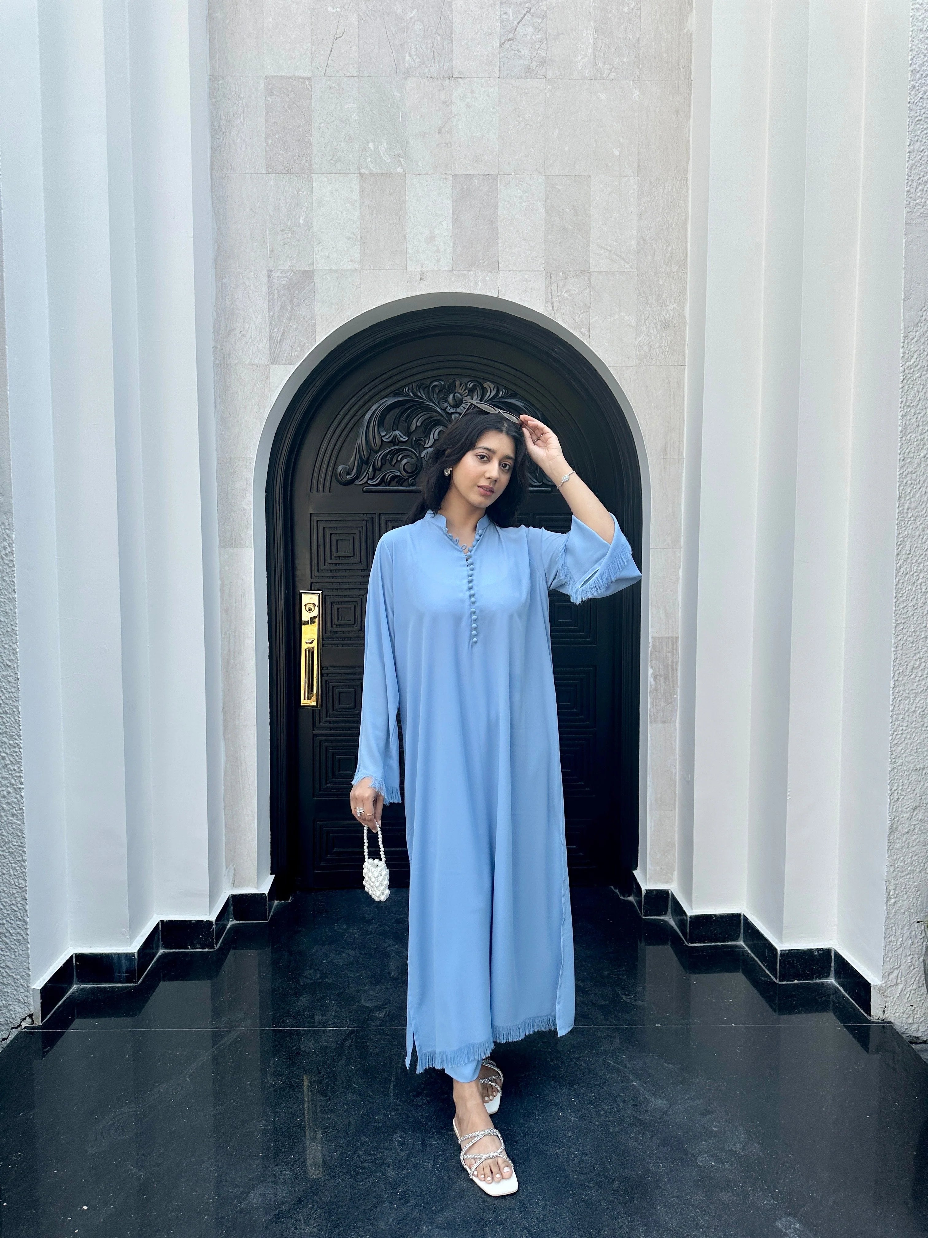 ICE BLUE button Set Fringes Georgette Pret 2 PCs