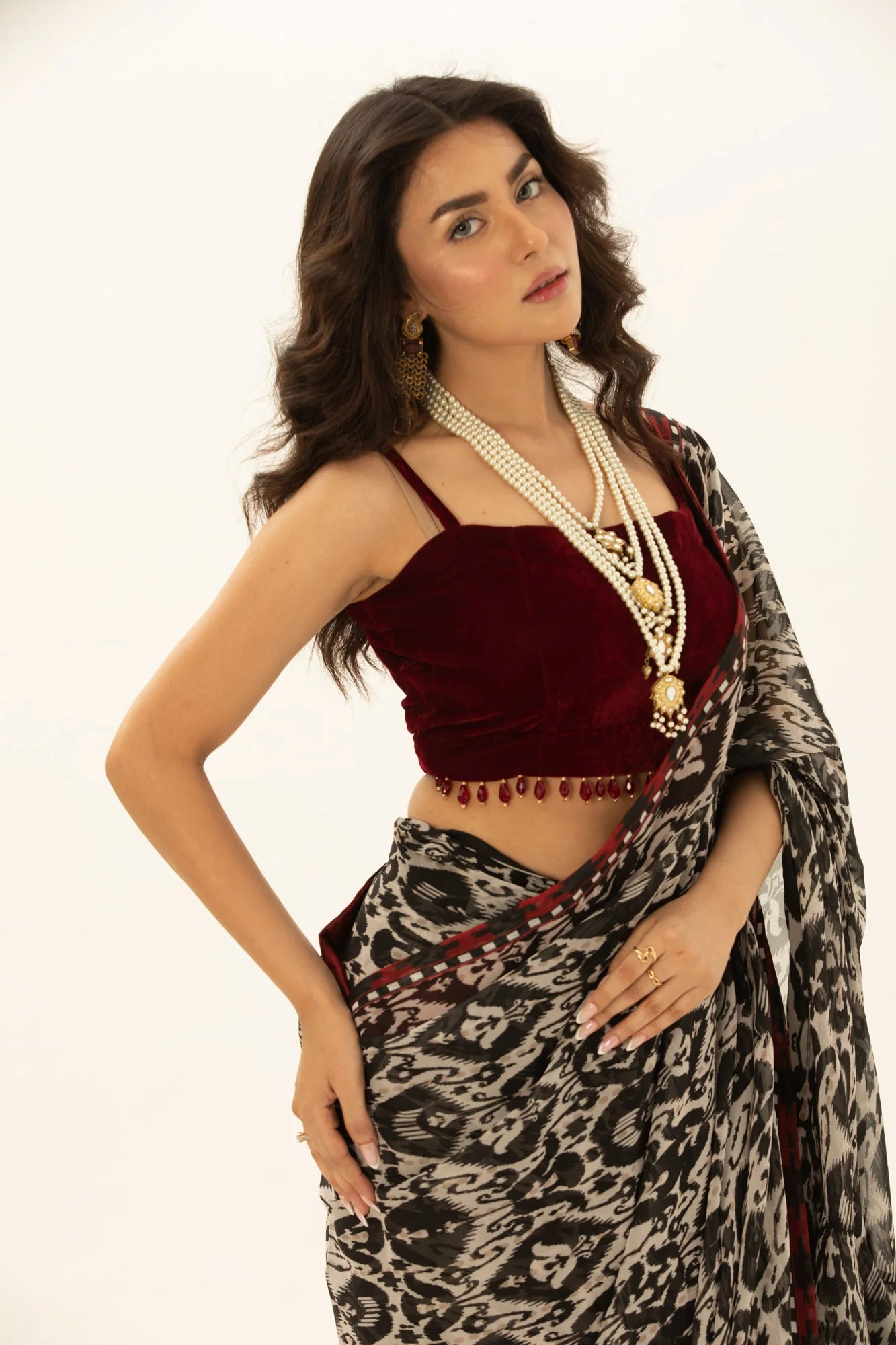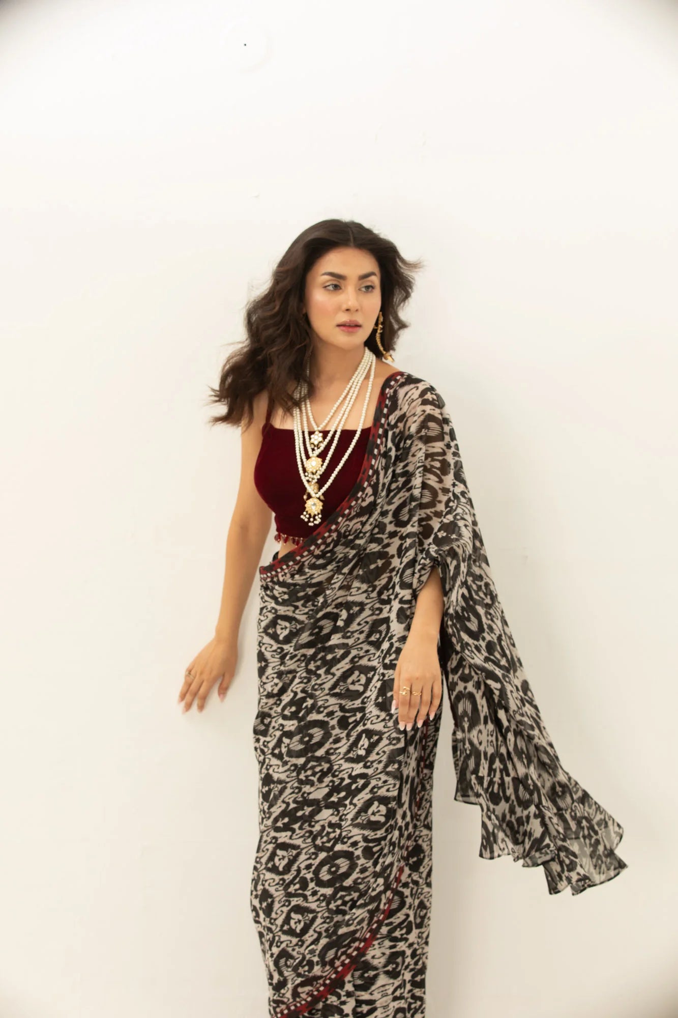 Imperial Maroon - Monochrome Printed Saree