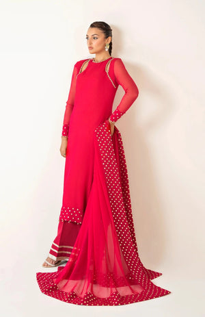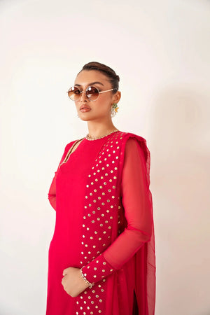- Introducing ‘Jasmine’, a sweetly charming candy-colored chiffon shirt with a sultry side cut neckline, embellished with intricate beads and silver sequins work that shines like a summer breeze. Paired with a flowing chiffon dupatta and raw silk trousers, this ensemble is a whimsical dream come true, perfect for making a stylish statement.