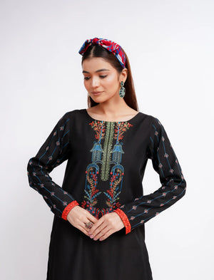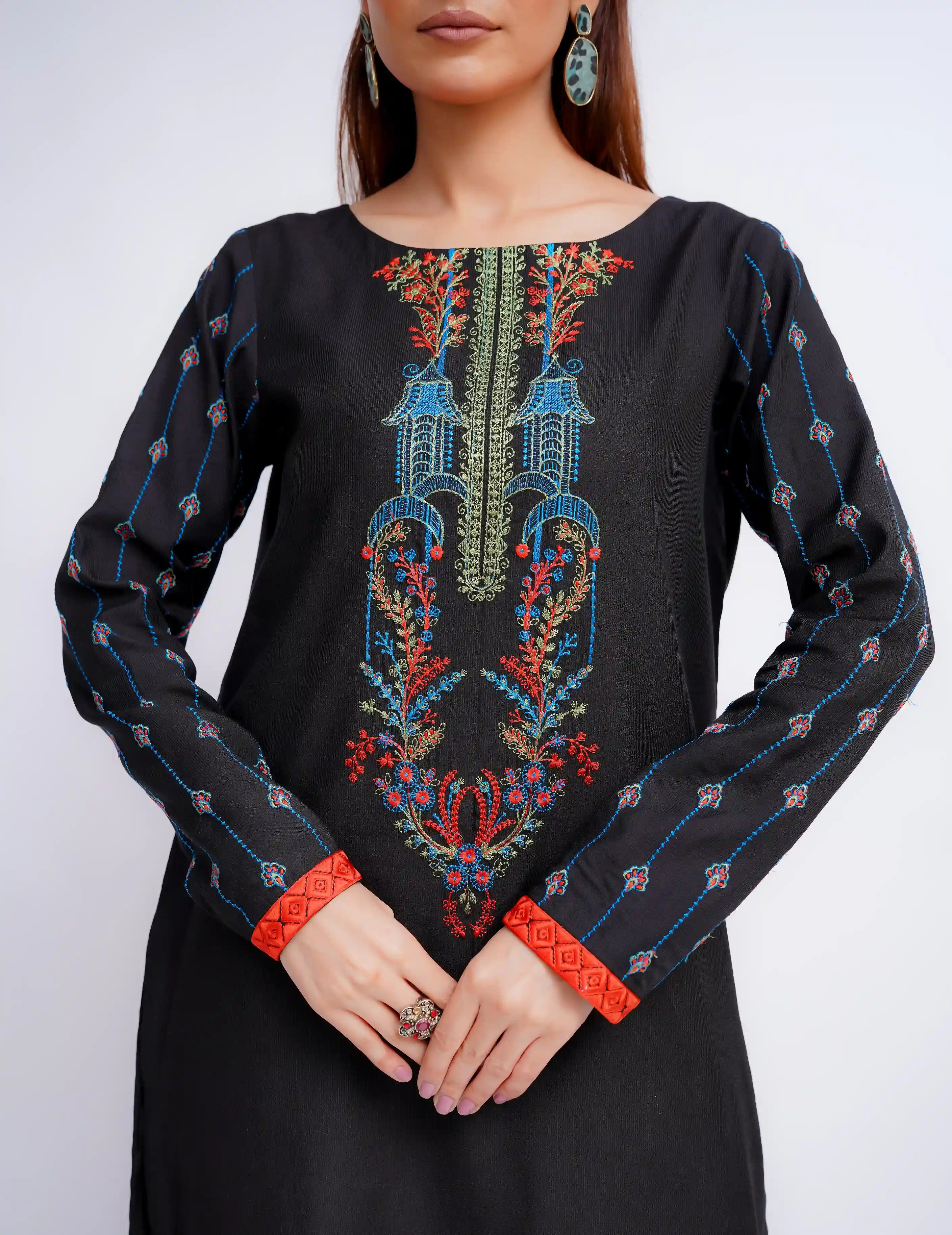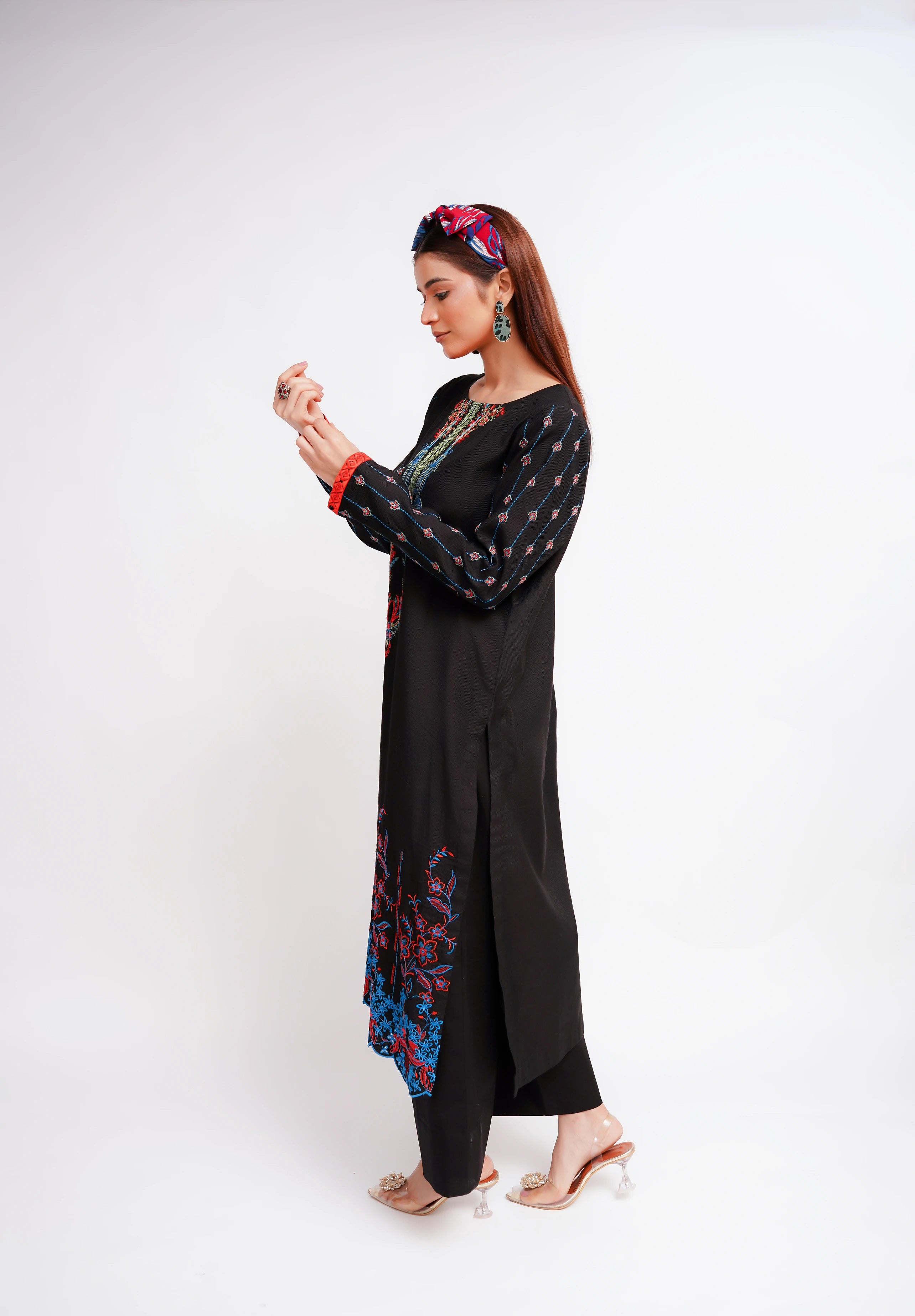 Additional Description: Effortlessly elegant and timeless, this black embroidered 2-piece set blends comfort with subtle sophistication. Crafted from soft, breathable fabric, the set includes: A longline tunic top adorned with delicate embroidery on the neckline and sleeves Coordinated straight-cut trousers offering a relaxed yet tailored fit
