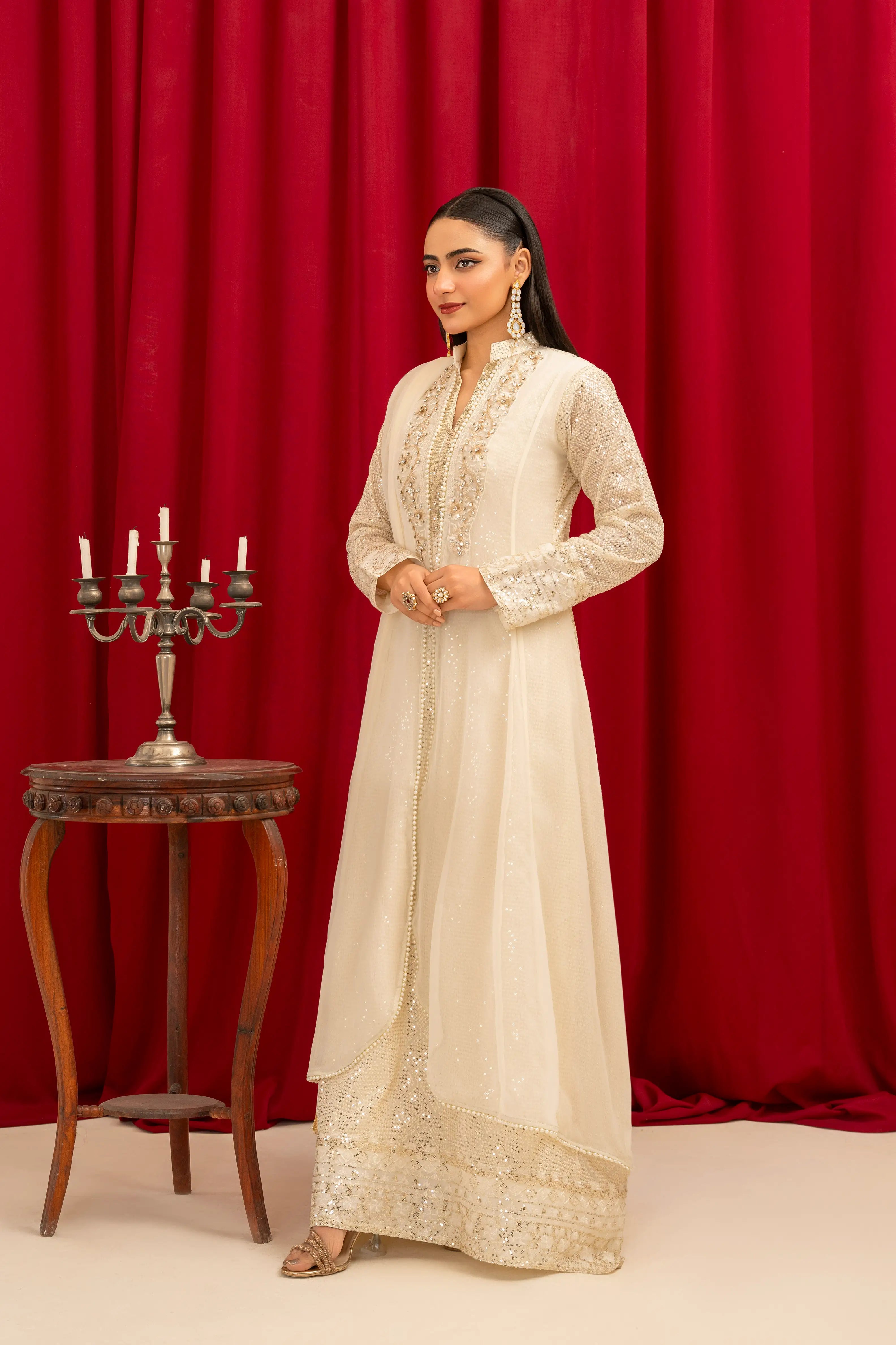 K-147-OFF WHITE Embroidered Chiffon Pret 3Pcs