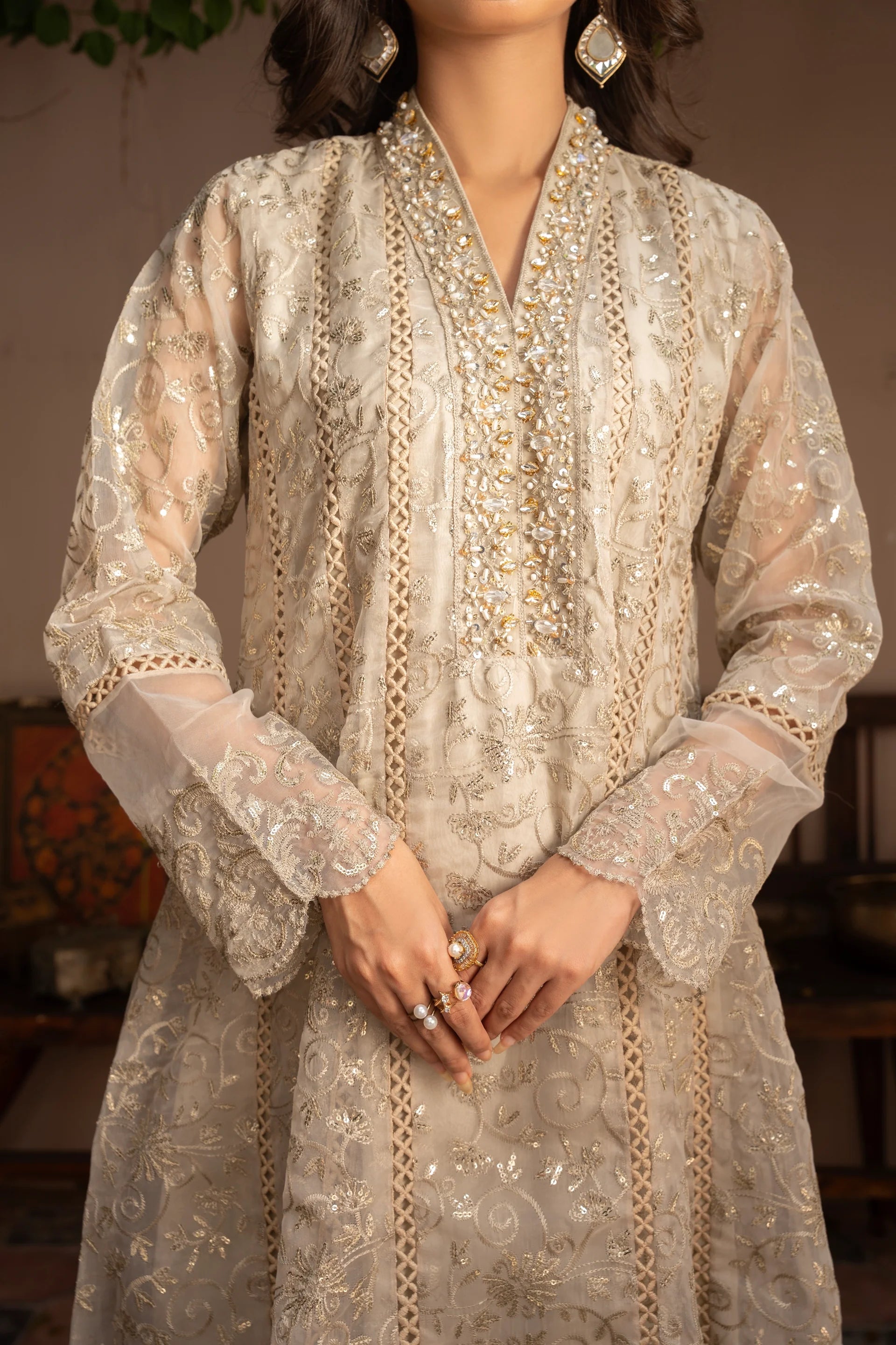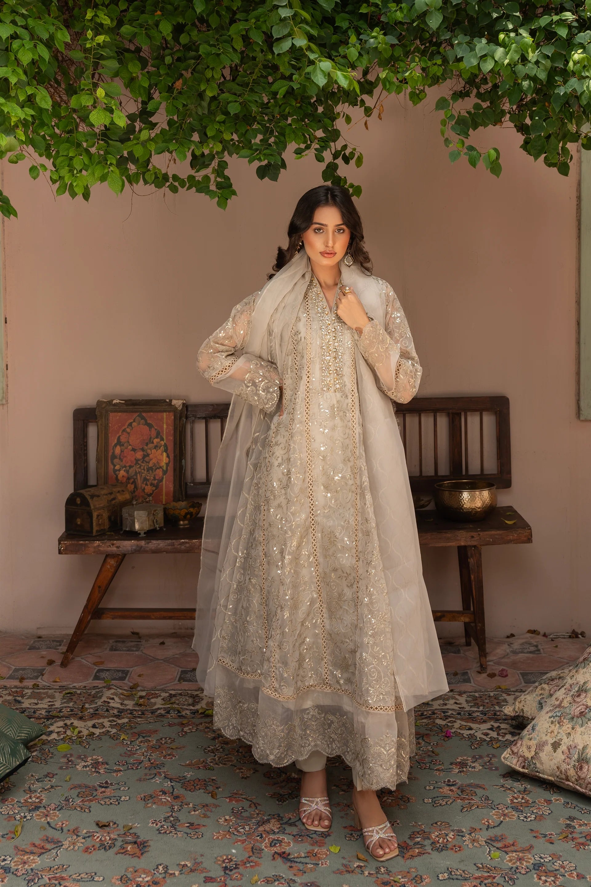 K-151-TAN BROWN Embroidered Organza Pret 3Pcs