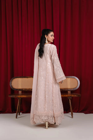 K-160-PEACH Khadi Net Maxi Pret 3PCs