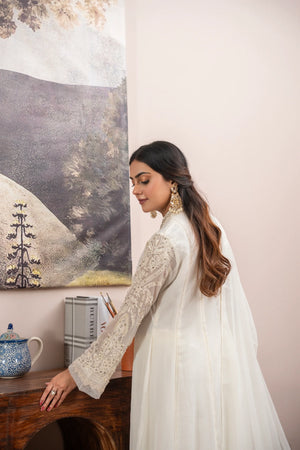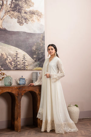 K-165-OFF WHITE Embroidered Chiffon Pret 3Pcs