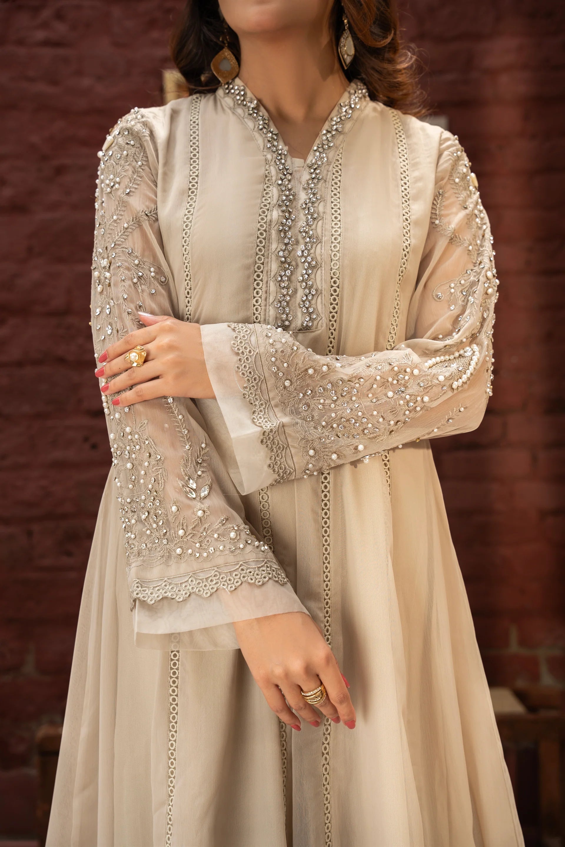 K-165-TAN BROWN Embroidered Chiffon Pret 3Pcs