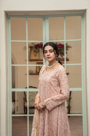 K-169-PEACH Embroidered Chiffon Pret 3Pcs