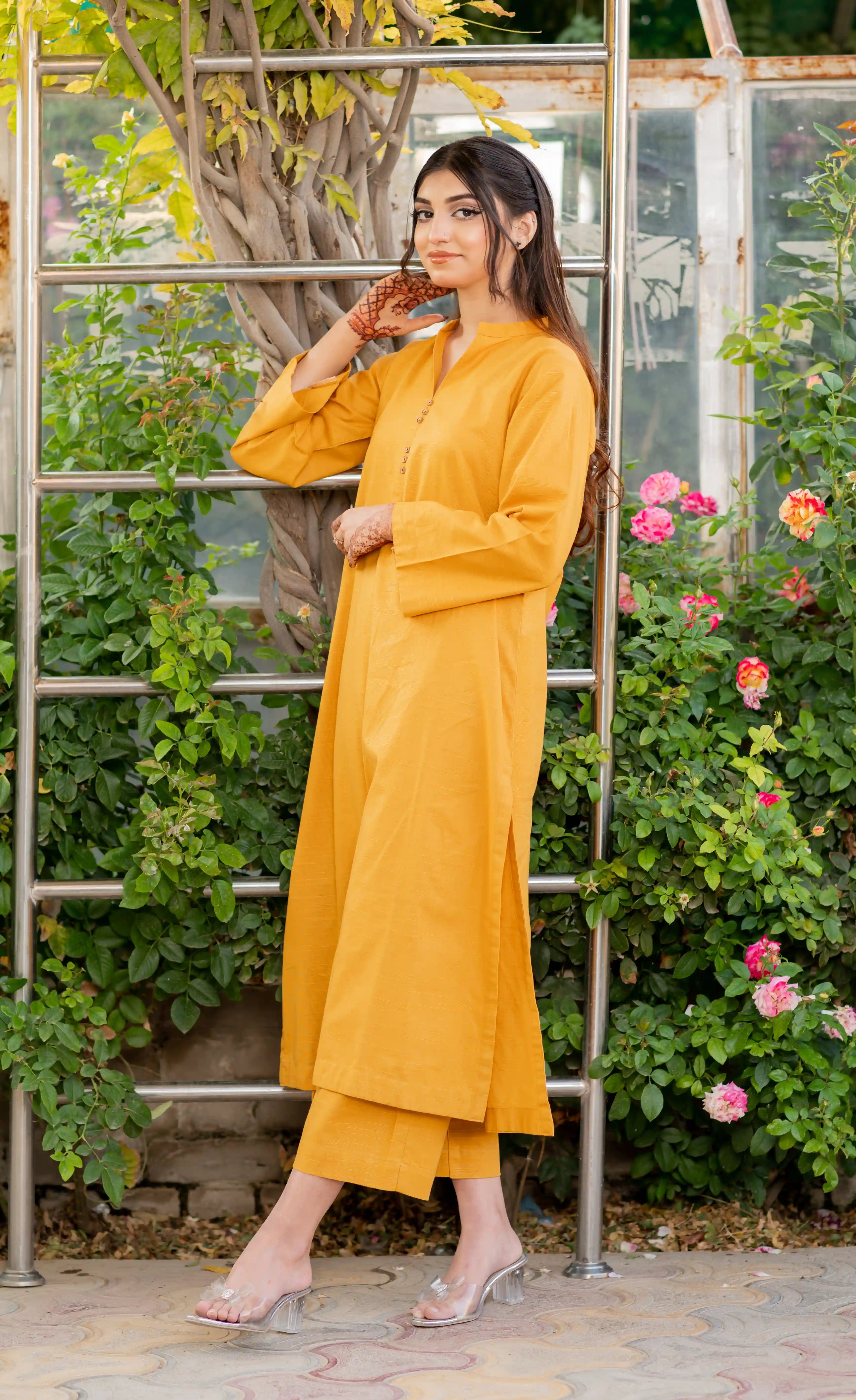 Embrace the season with elegance and warmth in our Golden Hour Co-ord Set (Kashan), a sophisticated mustard ensemble designed for both style and comfort. Crafted from premium Khaddar fabric, this set is perfect for cozy winter days, offering softness and breathability that will keep you comfortable all day long.