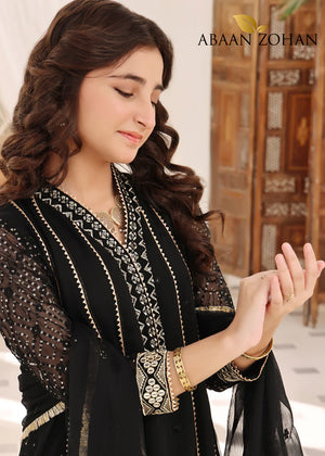 KASHISH KIDS BLACK CHIFFON PRET 3 PCs