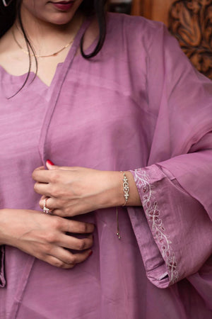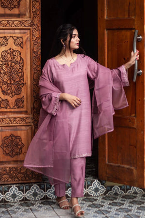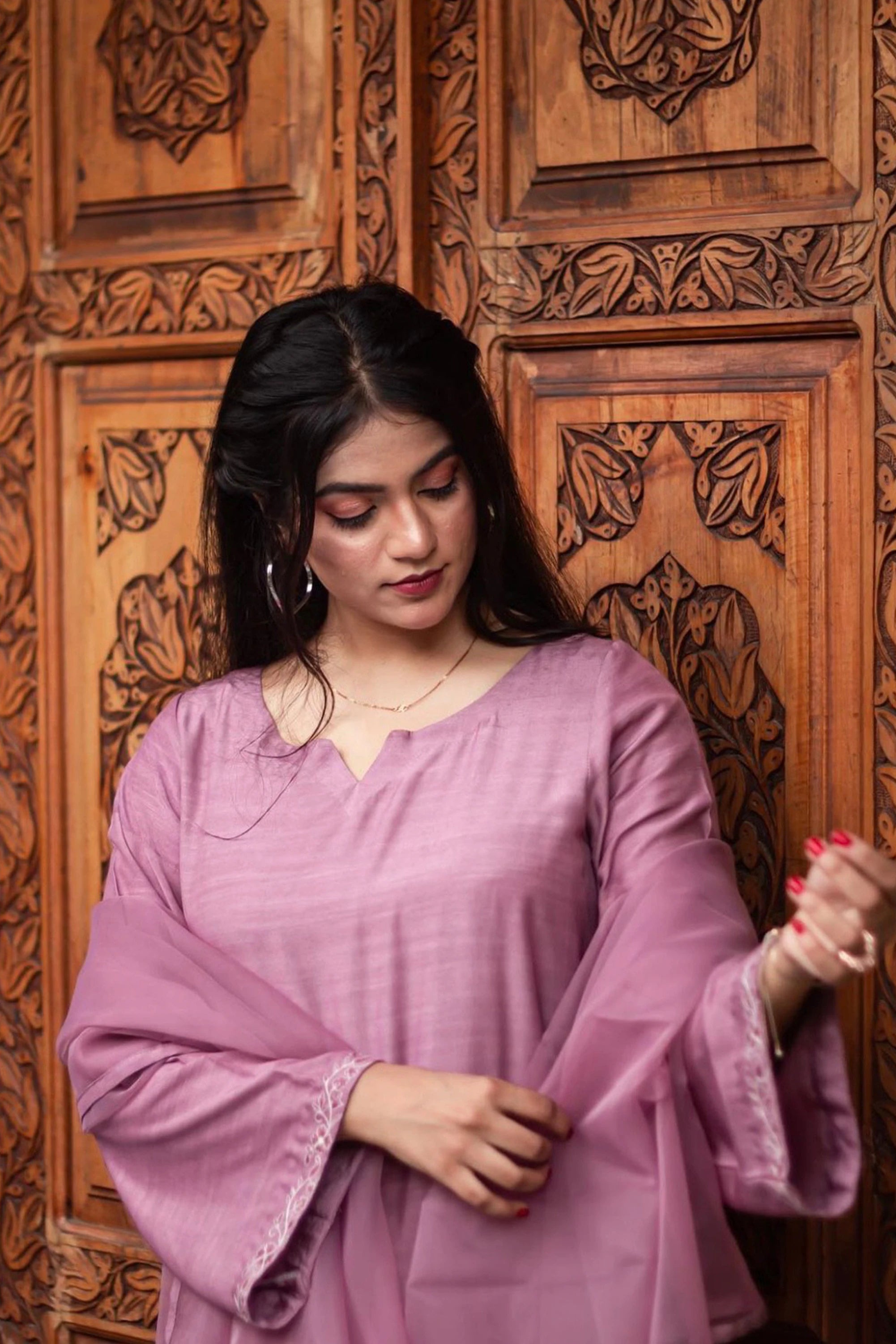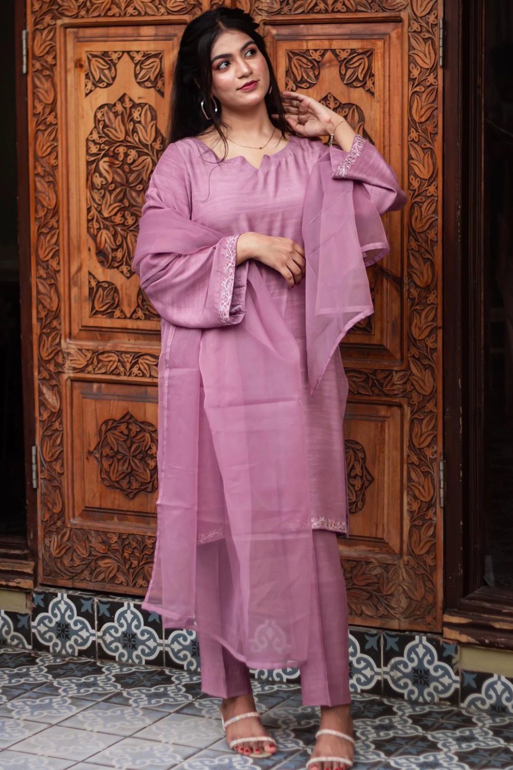 Lavender Embroidered Raw Silk Pret 3Pcs