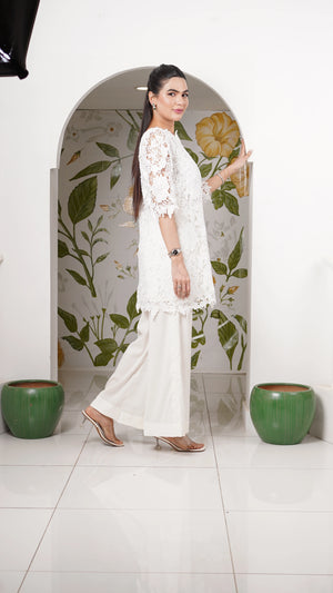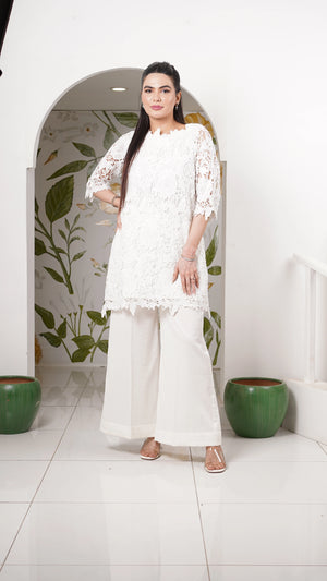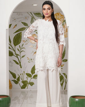 Turn heads in Lia — a luxurious white cutwork net co-ord set designed to dazzle at festive events and elegant dinners. Sophisticated, stylish, and stitched to perfection.