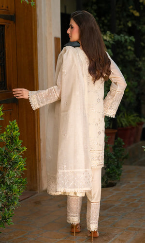 Details: This Light Fawn color has timeless beauty, with shimmering work of white Pearl. The ensemble comprises a delicate yet lavishly embroidered dupatta of white pearl to make your wardrobe more elegance.