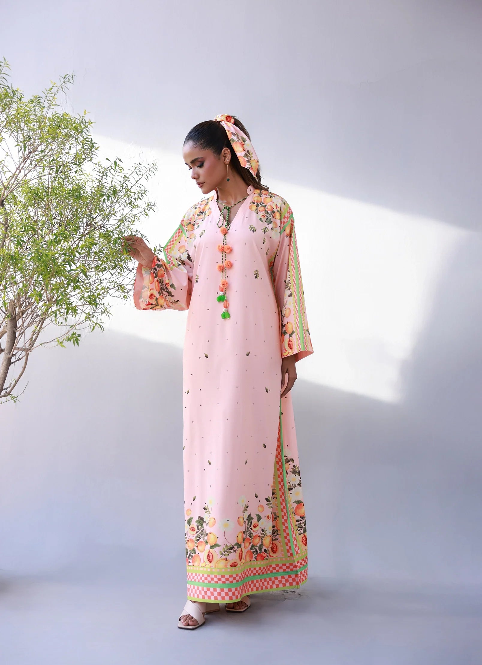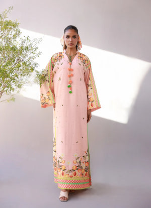 Lost in the Orange Groove kaftan is all about fun, comfort, and effortless style. Crafted from soft, breathable crepe, it features a bold quirky orange print that instantly stands out. Detailed with a playful tassel dori on the neckline, this easy-going kaftan is the perfect blend of comfort and chic ideal for everyday wear with a stylish twist.