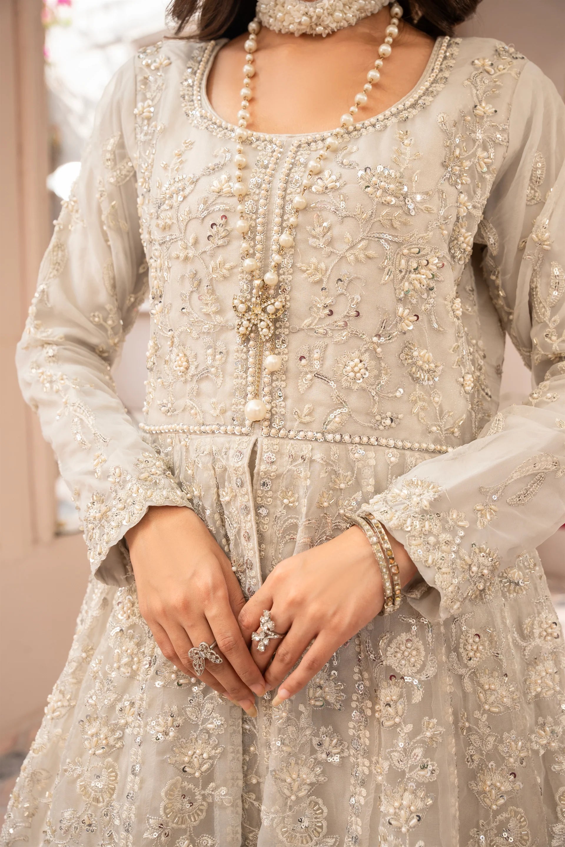 LUXURY-018-SILVER Embroidered Organza Pret 3Pcs
