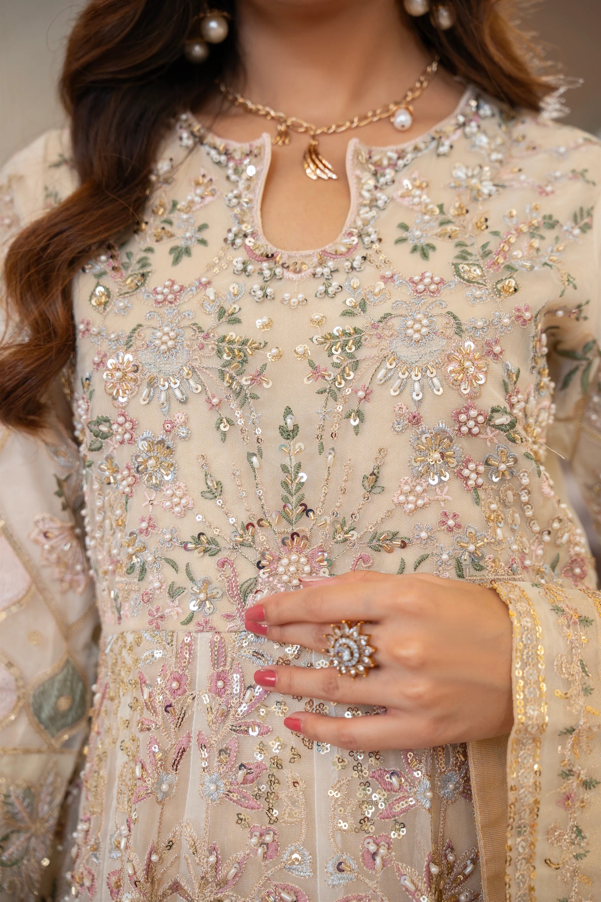 LUXURY-022-BEIGE Embroidered Organza Pret 3Pcs