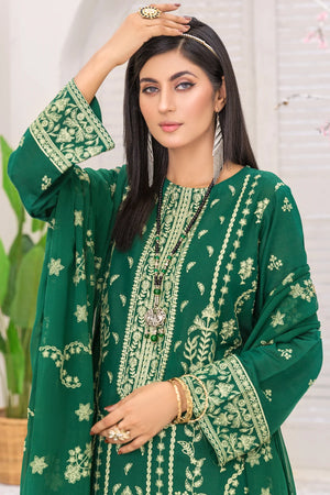 This 3 PCs embroidered unstitched includes:
