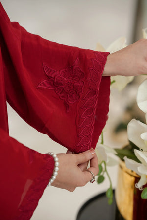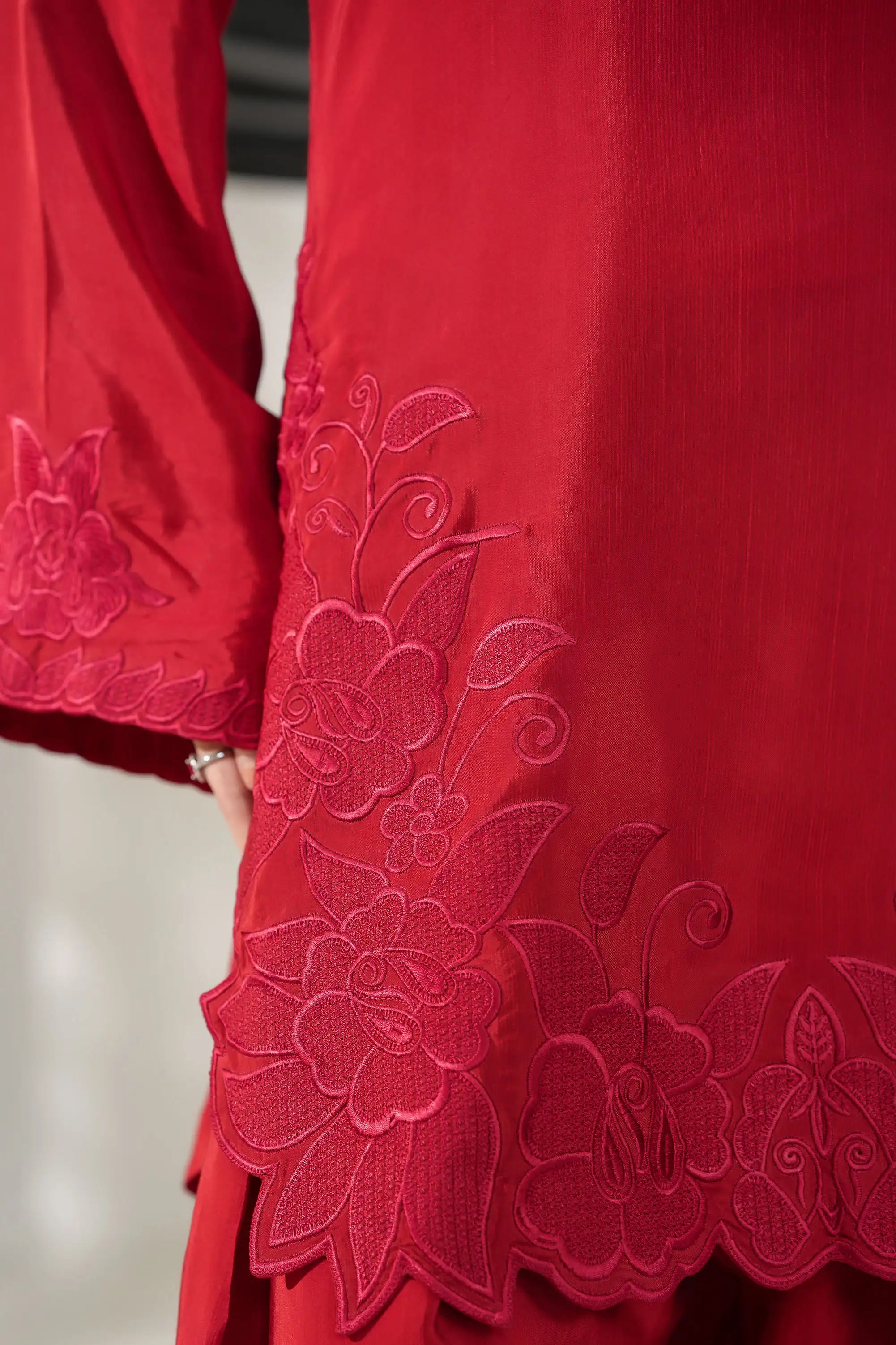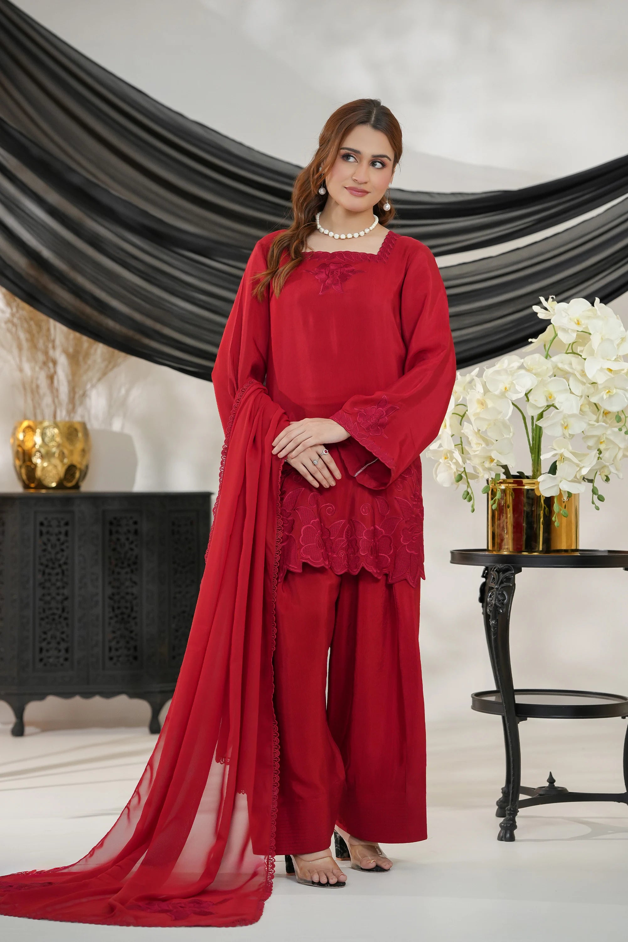 An ode to grace and sophistication, Mahjabeen is crafted from rich raw silk, featuring a delicately embroidered shirt paired with a classic farshi shalwar. The imported georgette dupatta, fully embroidered and adorned with lace on all four borders, adds a regal finish. With its intricate cut-work on Daman and timeless silhouette, Mahjabeen is the perfect choice for festive gatherings and grand occasions where elegance speaks for itself. 🌸