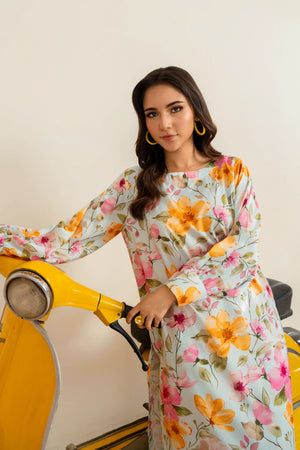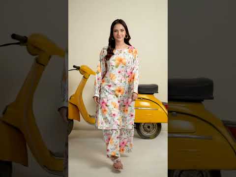 Additional Description: 2-piece blended silk pret with digital print, soft drape, and tailored fit for chic everyday style.