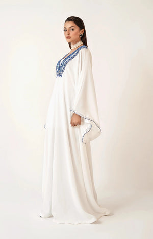 - Get ready to turn heads in Marshmallow, a stunning floor-sweeping dress featuring intricate hand embellishments, mirror work, and sequins on the neck, paired with flowing long sleeves that showcase exquisite thread work. This ash white showstopper is perfect for making a glamorous entrance at any special occasion, combining elegance, sophistication, and unparalleled style.