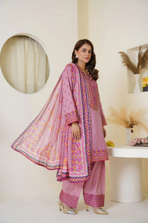Mauve Pink Embroidered Viscose Pret 3PCs