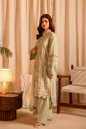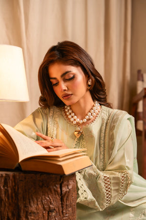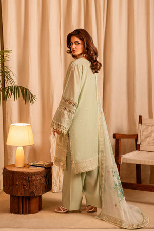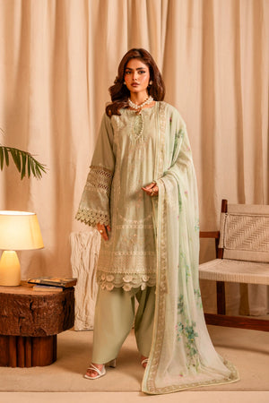Additional Description: Fully embroidered cotton shirt (3.15 meters) Embroidered back Embroidered sleeves Printed chiffon dupatta (2.50 meters) Dyed cotton trouser (2.50 meters)