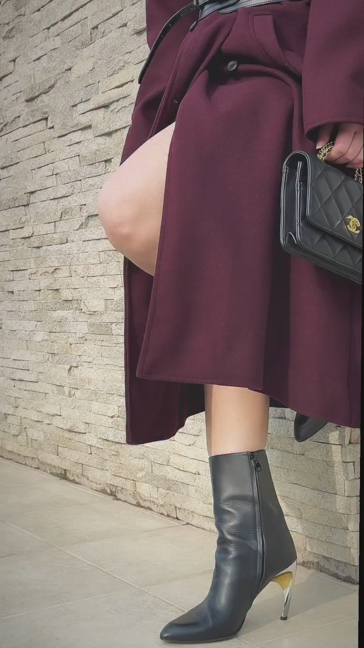 Elegantly tailored from soft wool, Merlot Mist captures the essence of refined winter dressing. The deep burgundy tone, accentuated by a double-breasted front and classic lapels, radiates sophistication. Cozy yet effortlessly chic, this coat is perfect for elevating any cold-weather look.