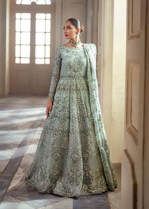 Exude elegance in our Minha ensemble, featuring a soft pistachio-hued organza Maxy and duppatta, fully embroidered with shimmering silver sequins, pearls, and beads, perfect for making a statement at any wedding or celebration. This stunning outfit is a masterclass in understated luxury, with its delicate pistachio color, intricate embroidery, and shimmering details that will leave you feeling like a queen.