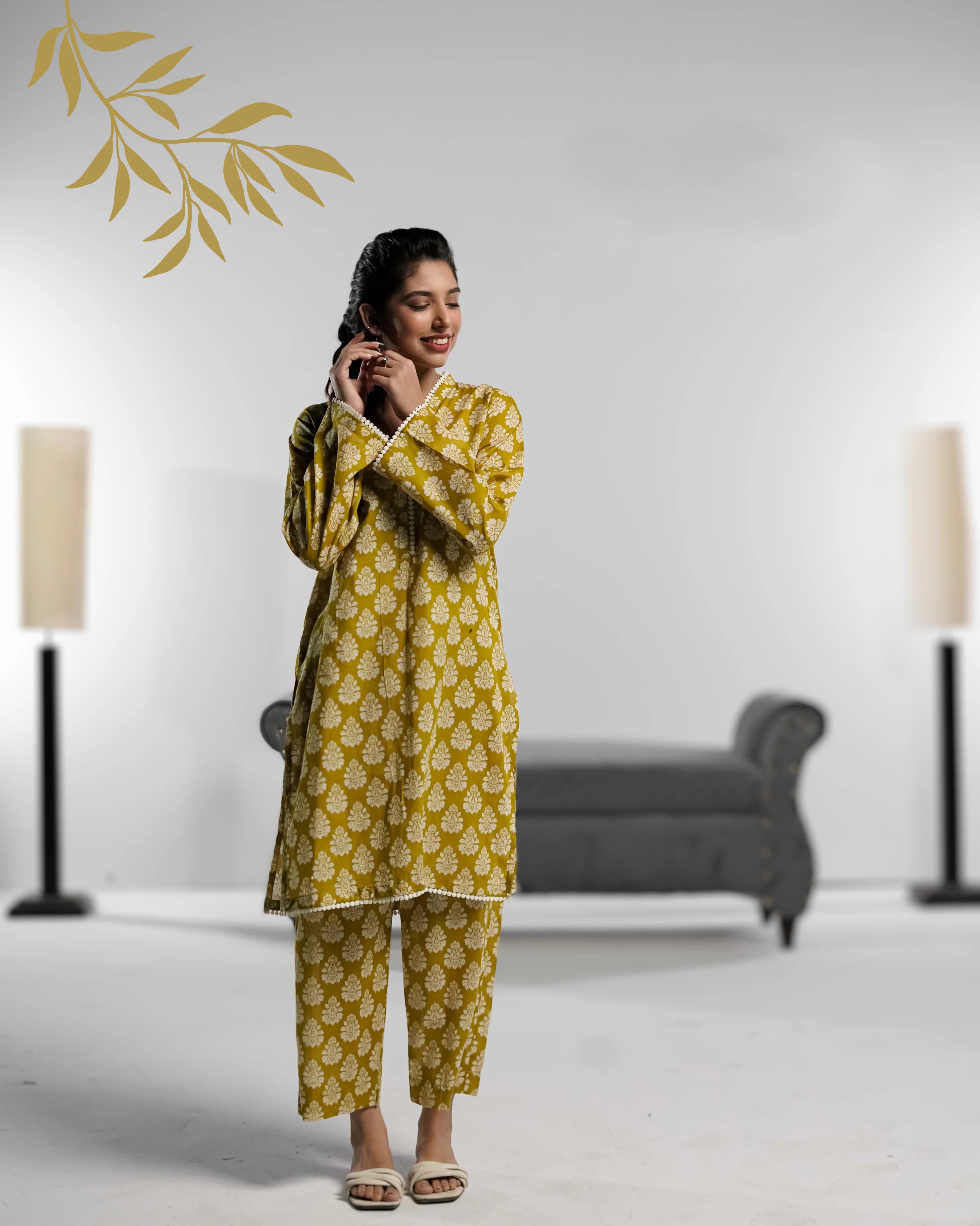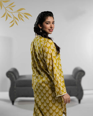 Introducing the ALHAM Yellow Cambric Dress, a stylish and comfortable outfit perfect for any occasion. Made from high-quality cambric fabric, this dress is both durable and breathable, ensuring that you stay comfortable throughout the day. The yellow color adds a touch of warmth and vibrancy to your wardrobe, making it an ideal choice for spring and summer events. The dress features a floral print that adds a touch of elegance and sophistication to its design. The loose fit and long sleeves make it suitable for both casual and formal settings. Pair it with a matching scarf or accessories to complete the look.