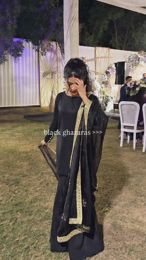 Noir Gharara Silk Embroidered Pret 3Pcs