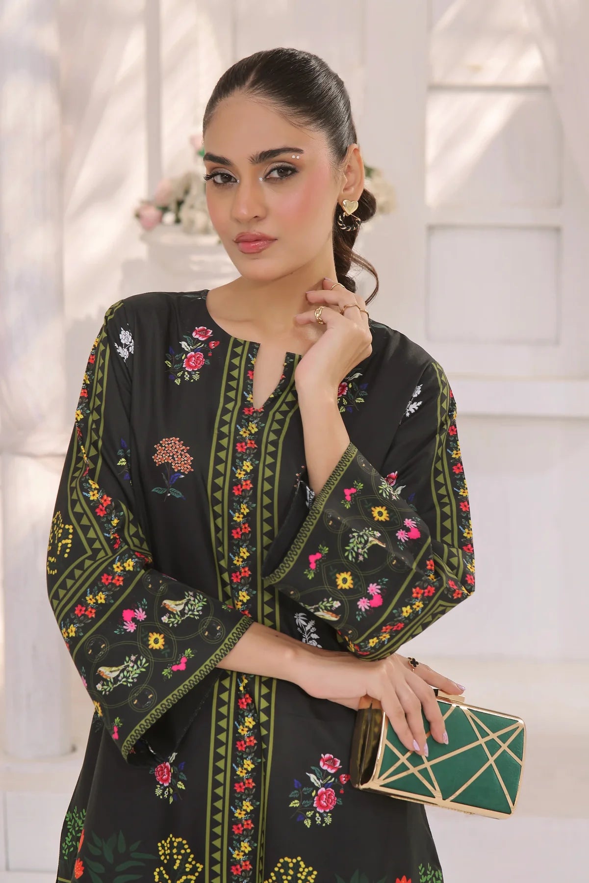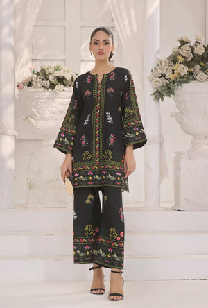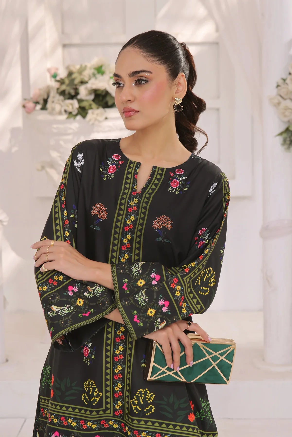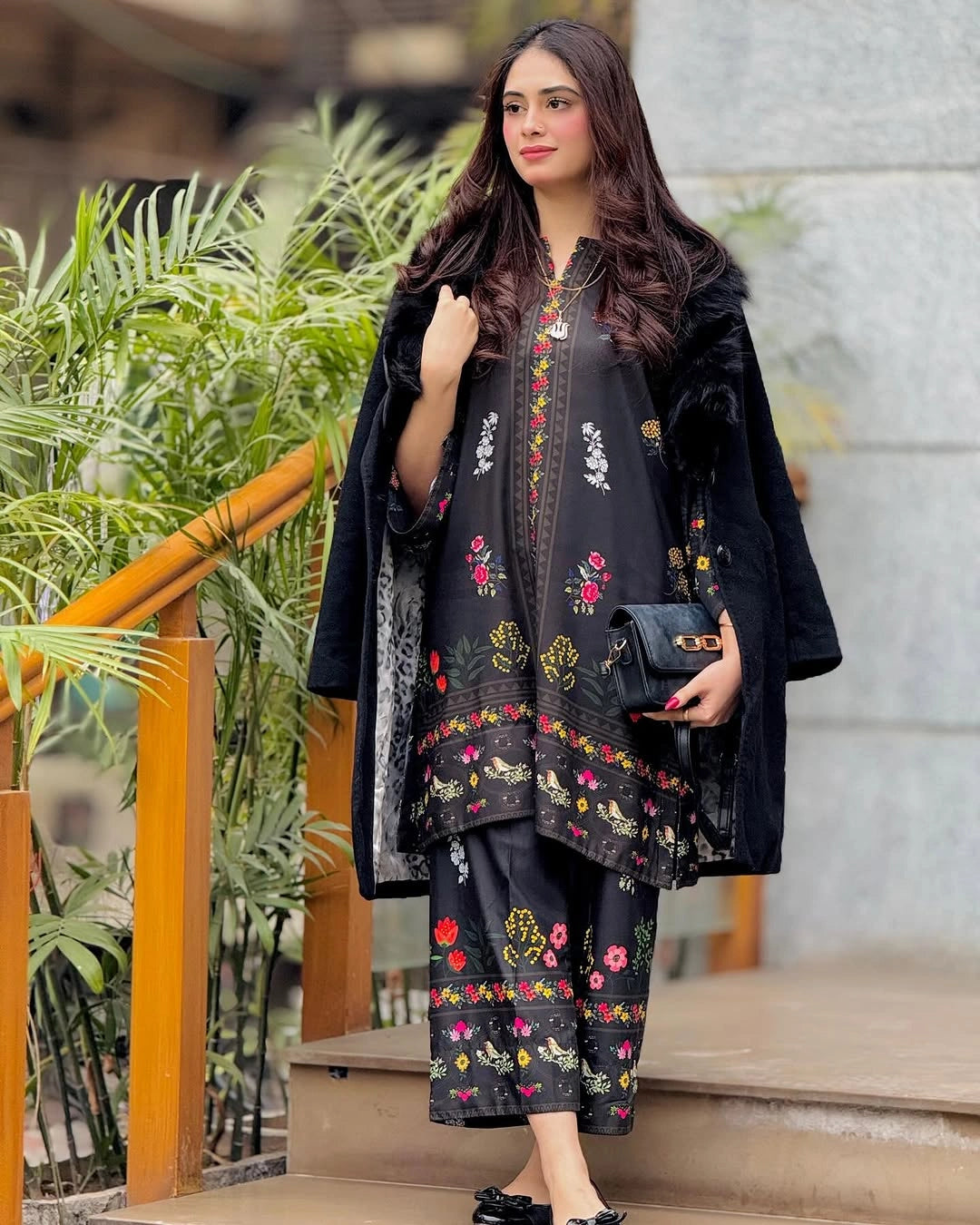 This deep black lawn silk co Ord set features vibrant tiny flowers, exuding bold elegance and playful charm. With luxurious fabric and an airy round net short shirt, it’s a captivating choice for any occasion.
