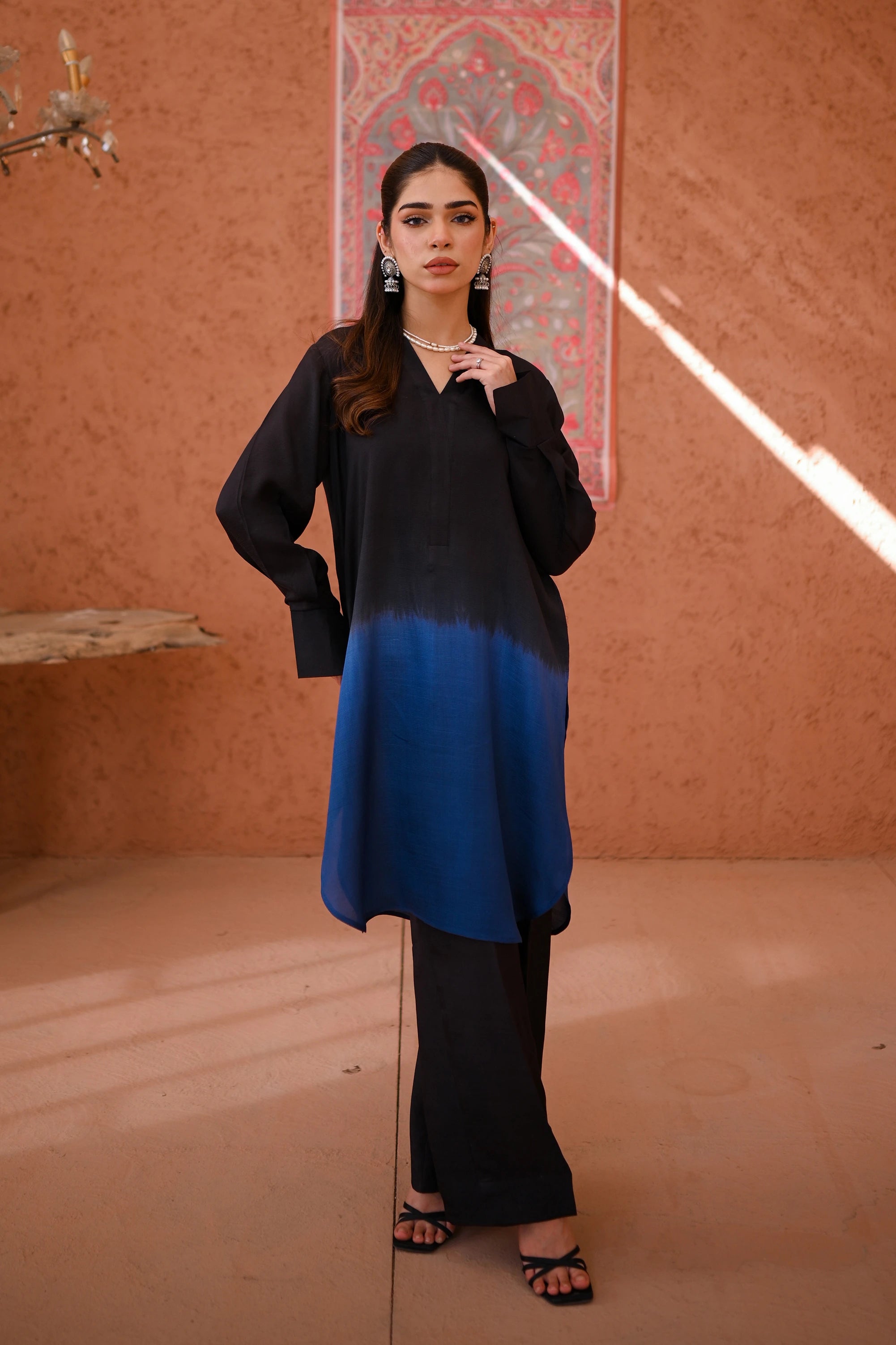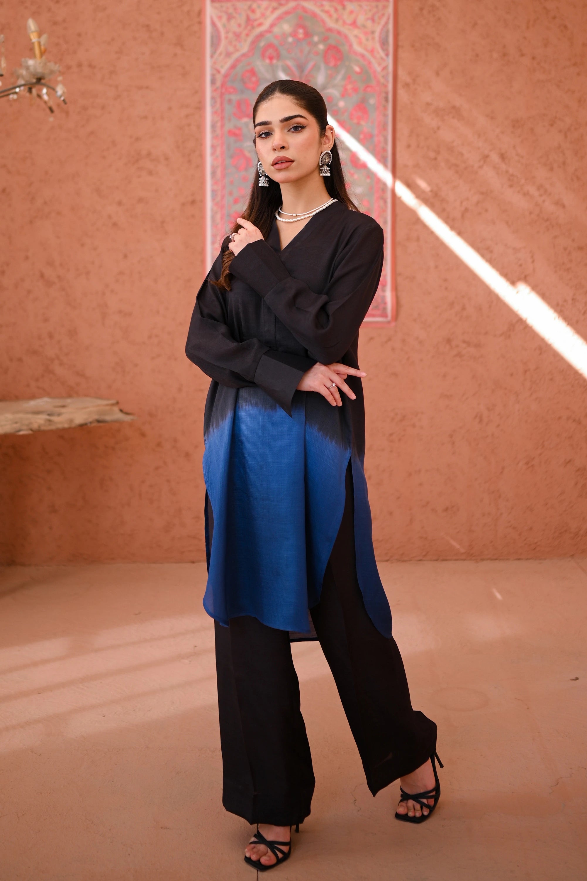 It’s a two piece dress includes ombre shirt along with culotte.