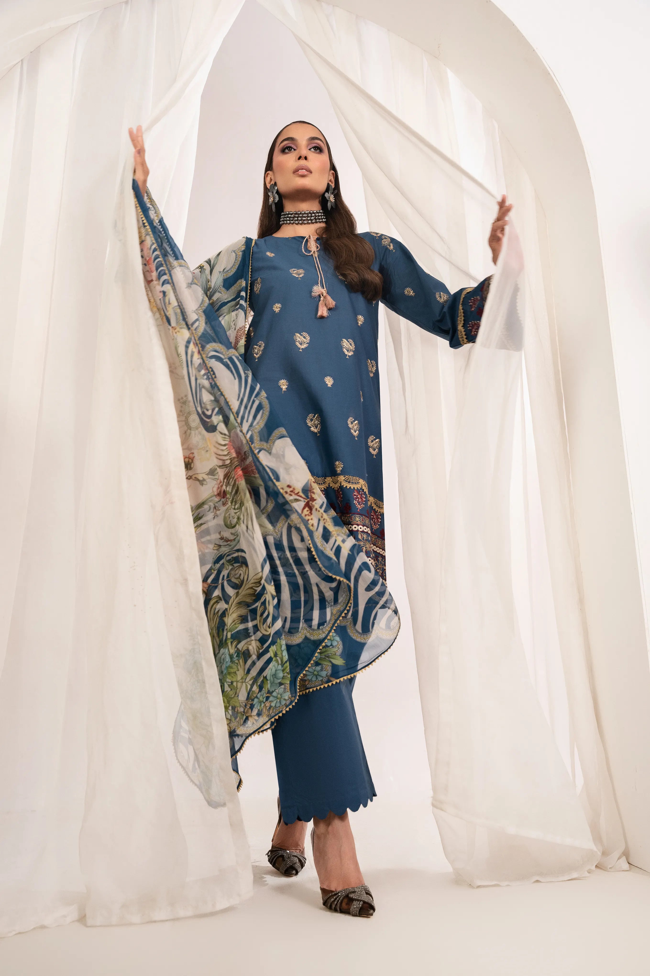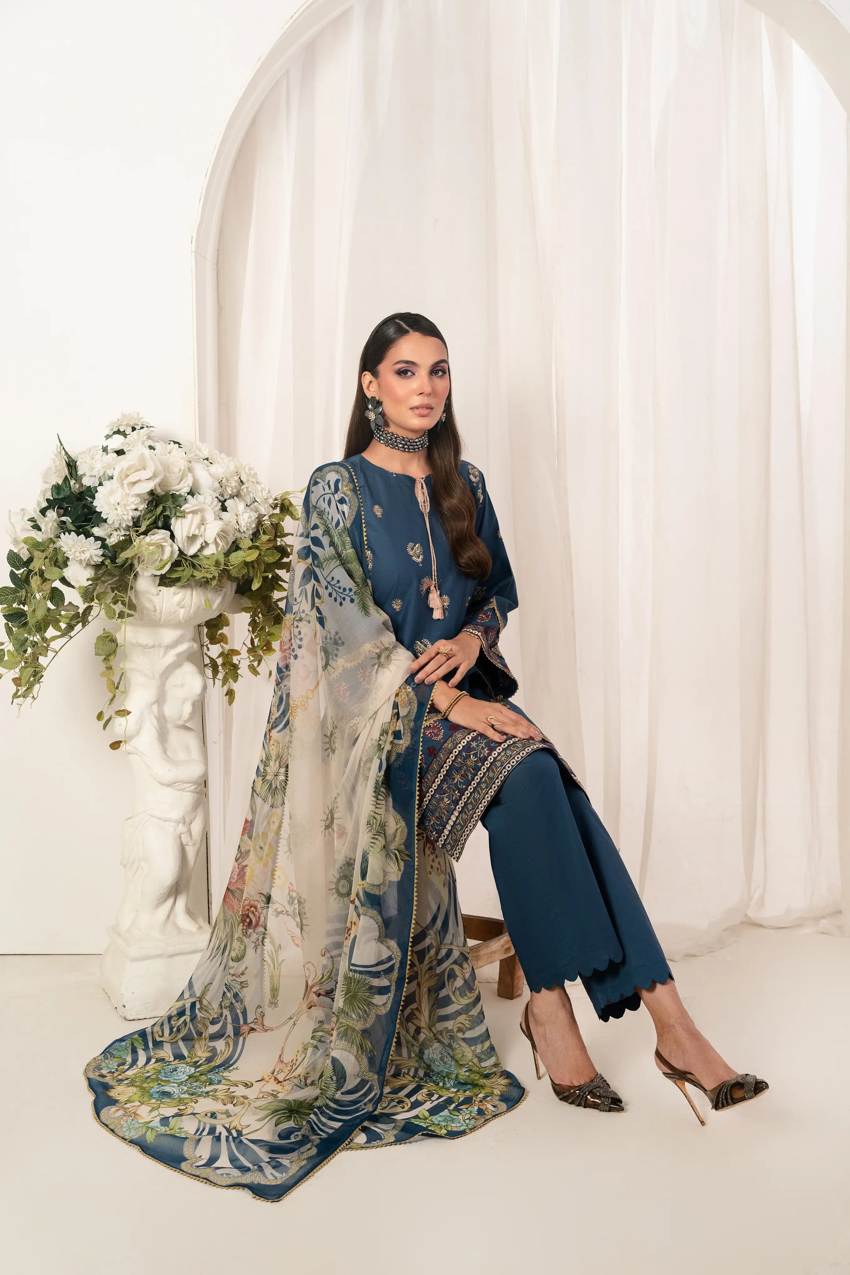 Dyed and fully embroidered cambric shirt with embroidered sleeves
