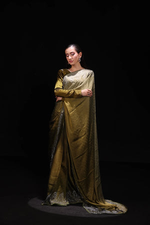 Olive Opulence Embroidered Silk Saree 2Pcs