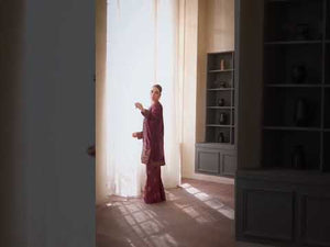 A standout fusion of texture, craftsmanship, and color, the Blush Layer jacket set brings soft sophistication to the season. Crafted in luxurious tea pink velvet, the jacket is detailed with machine embroidery and adda embellishment, blending traditional techniques with a contemporary silhouette.