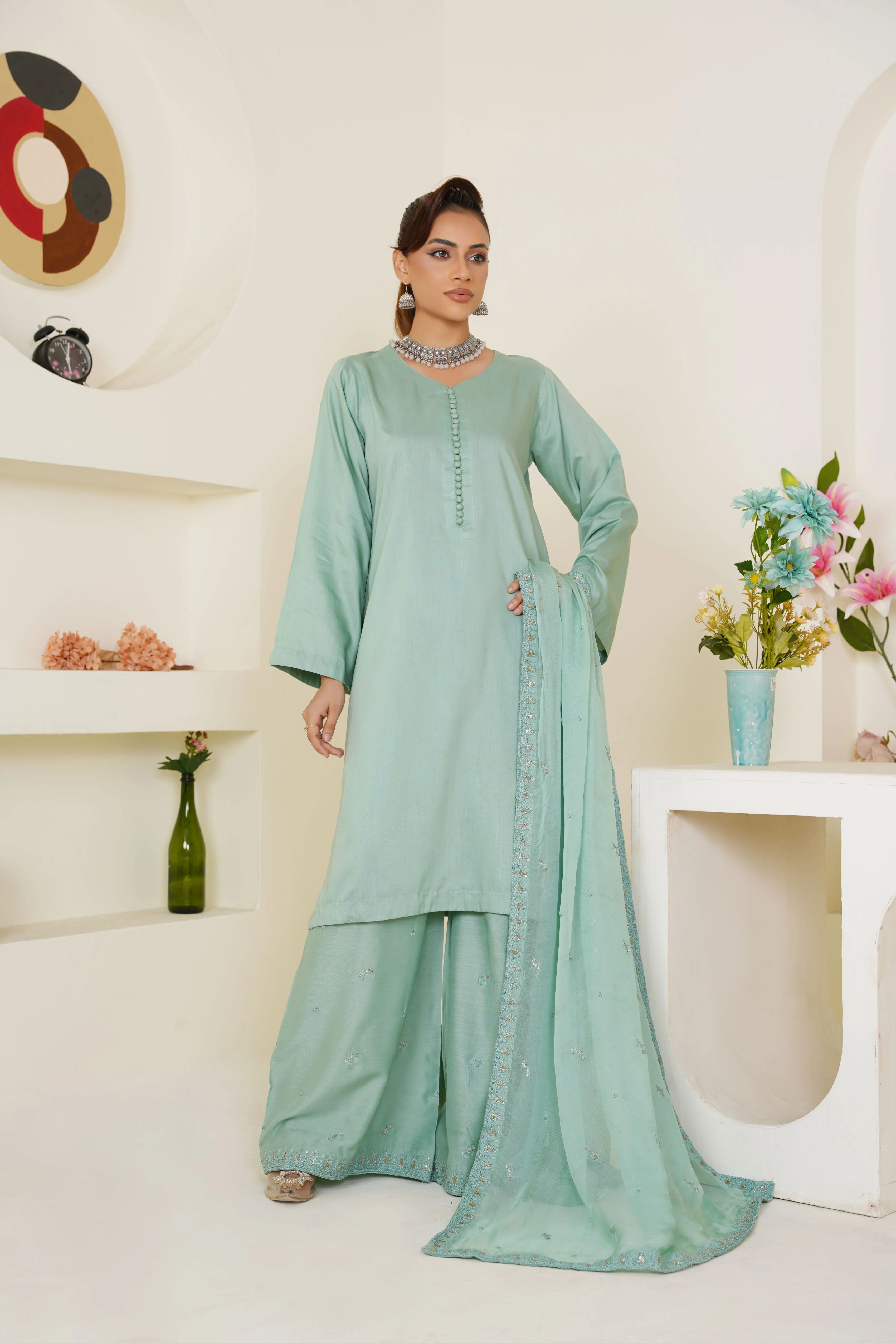 Pastel Sea Green Solid Pret Viscose 3 PCs