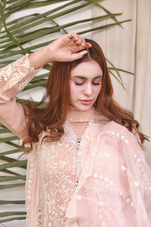 - Shirt with sepret inner ( shameez) resham work chiffon duppatta & malai crap trouser