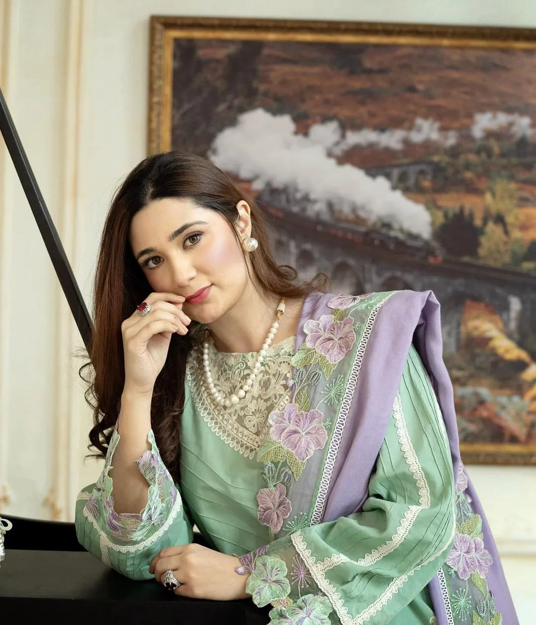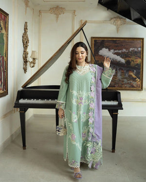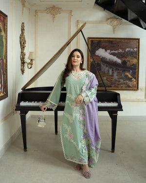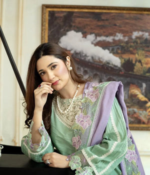 - 2.5 Yards Embroidered Front (Lawn) green 1Pc