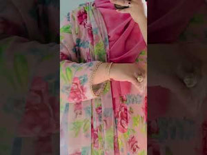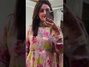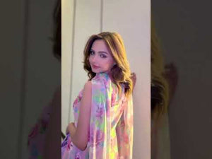 Presenting “Pink Fantasy” – a spellbinding dress in a rich, enchanting Pink Floral Tone. The chiffon maxi is adorned with a meticulously lace neck, creating a dazzling design. Paired with crepe bottoms, the ensemble is completed with a Chiffon dupatta. “Pink Fantasy” is a masterpiece of elegance and sophistication.