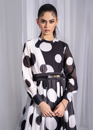 Polka Dot Flared Evening Gown - Black and White Polka Gown
