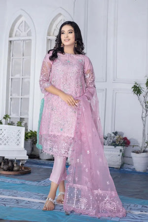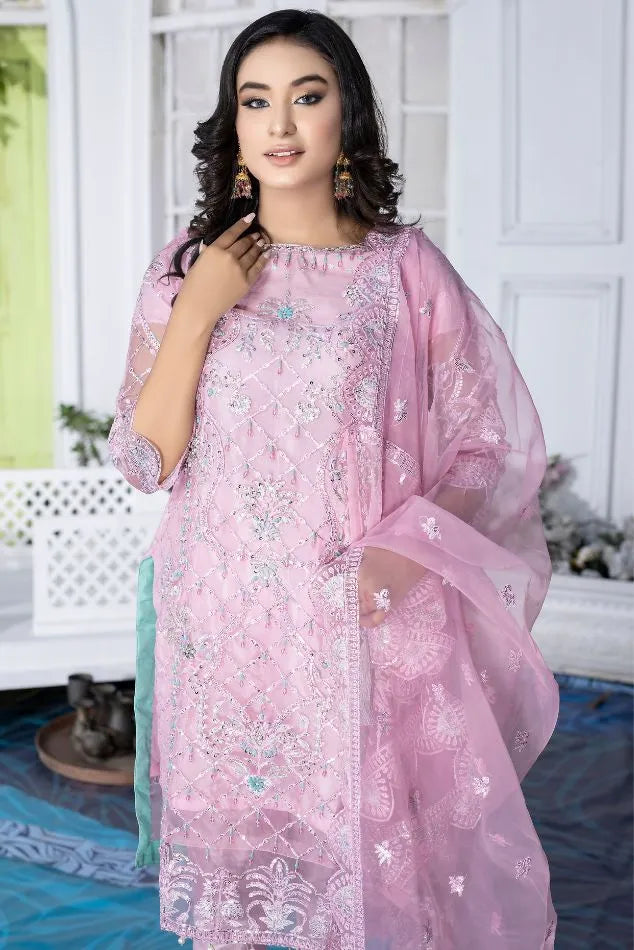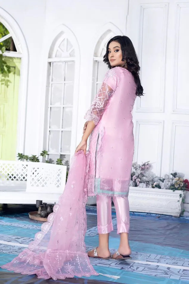 PRECIOUS PINK ORGANZA UNSTITCHED 3 PCs
