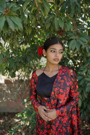 Red Floral Silk Saree Pret 2Pcs