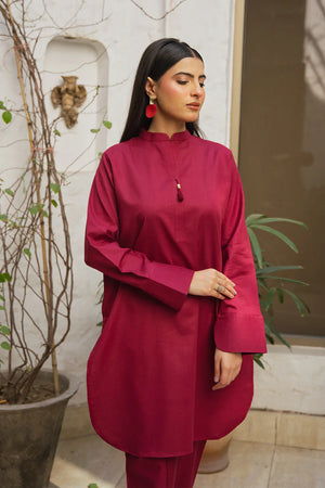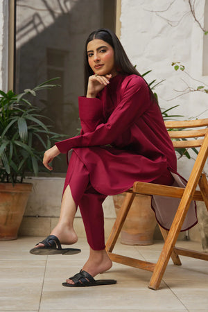 Featuring a classic round collar neckline with a stylish placket, cuffed sleeves, and a chic tulip shalwar for an effortlessly elegant look.