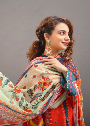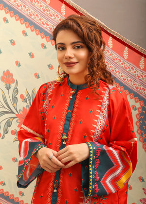 This printed shirt & dupatta is itself a piece of art inspired by Mughal motifs with a floral touch making it vibrant & bright for this season.
