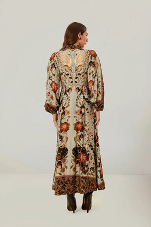 Radiate charm and elegance in this off-shoulder maxi dress crafted from premium soft silk. The rich scarlet base adorned with intricate floral patterns adds a touch of sophistication, while the breezy silhouette ensures all-day comfort. Perfect for brunches, evening soirees, or casual outings, this one-piece outfit is designed to make a statement effortlessly.