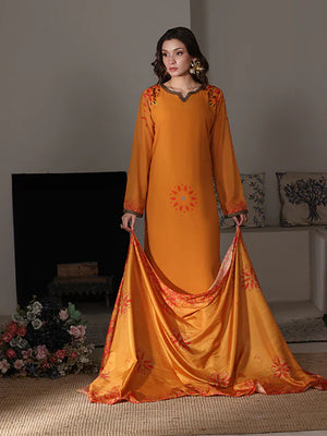 Immerse yourself in the golden glow of the Saffron Solstice, a three-piece set that exudes warmth and artistic flair. This outfit is designed for the modern woman who loves a clean, minimalist silhouette enriched with vibrant, high-contrast cultural motifs.