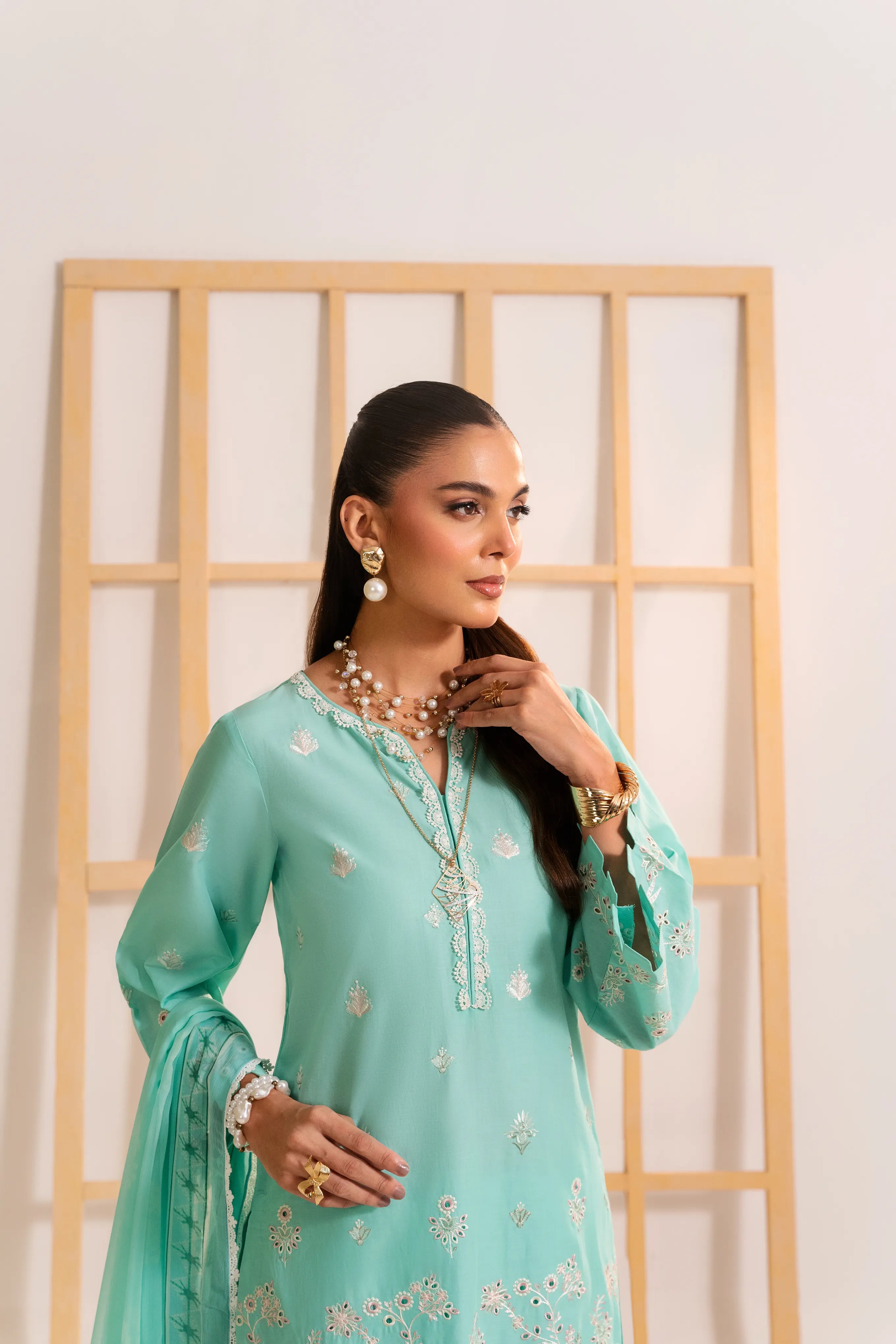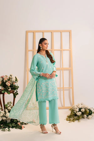 Dyed and fully embroidered cambric shirt with embroidered sleeves