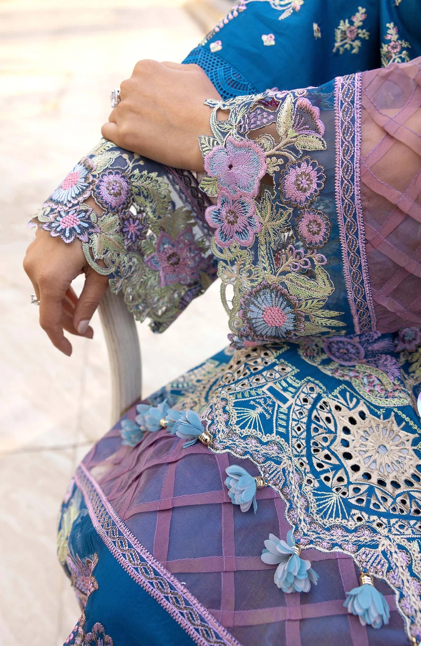 Embroidered Organza Sleeve Border 1 Piece