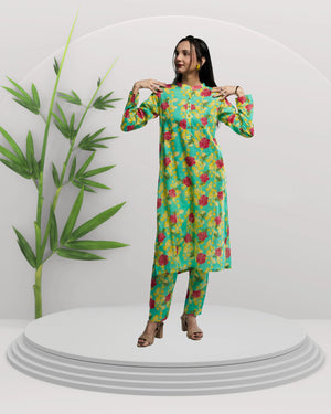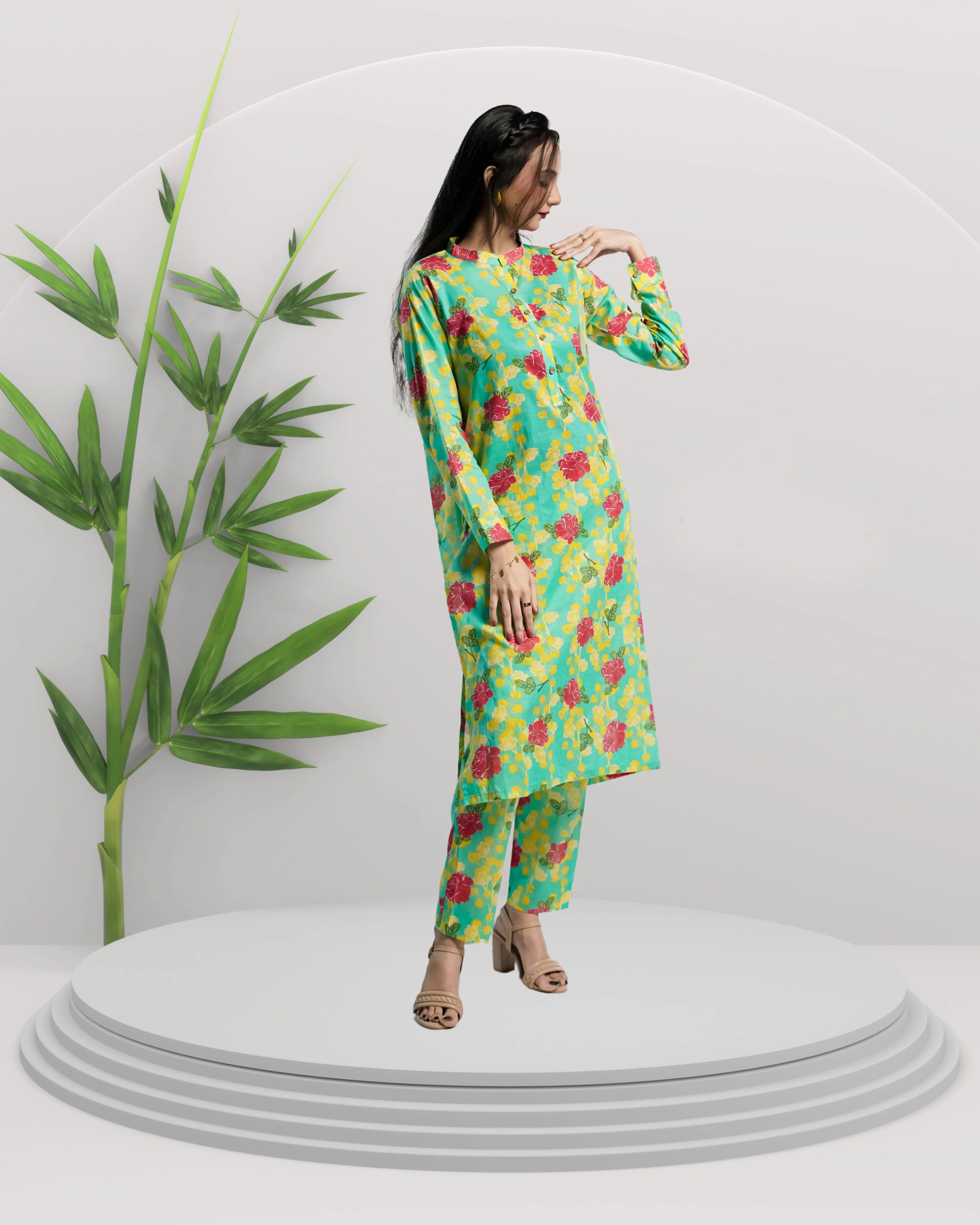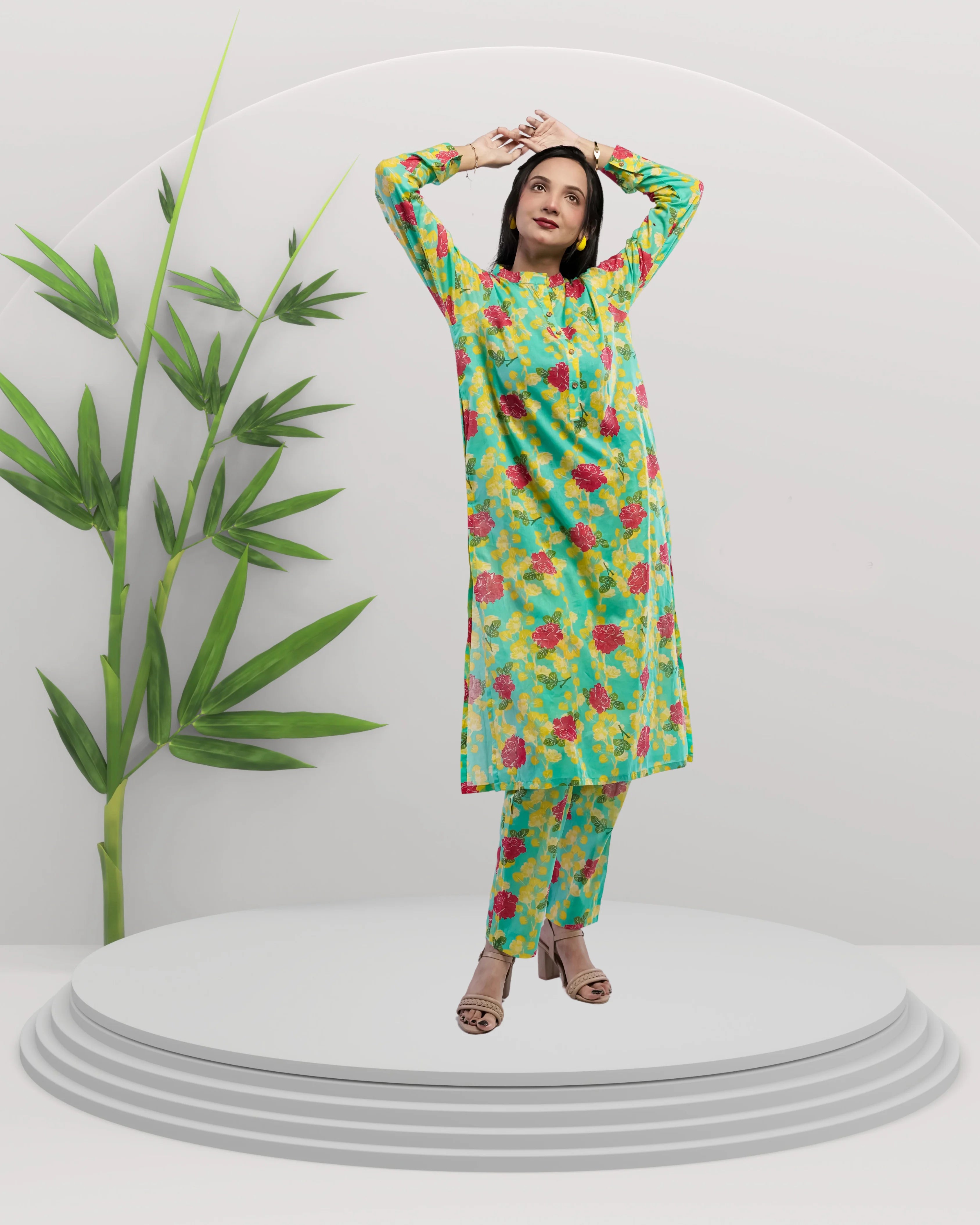This charming seafoam green dress features a lovely floral print, crafted from high-quality cambric fabric. The elegant floral design adds sophistication, making it a perfect choice for a variety of occasions. Lightweight and comfortable, this dress is ideal for warm weather and can be styled for casual outings, formal events, or special occasions. Its versatility and fashion-forward appeal make it a standout piece in any wardrobe.