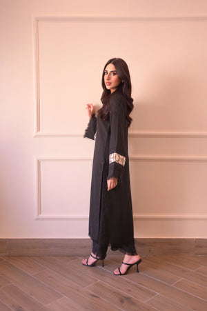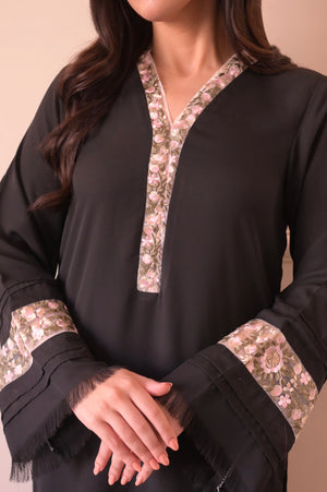 A pure Korean purple georgette co-ord set designed with a modern frayed technique, offering a chic and stylish look. The lightweight fabric and unique detailing make it perfect for both casual and semi-formal occasions.