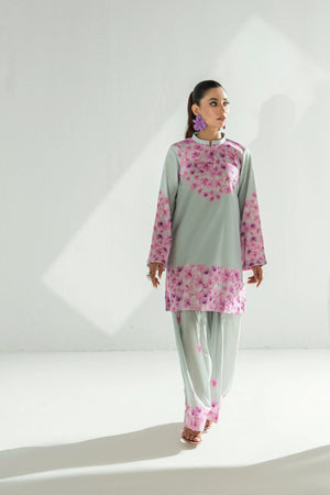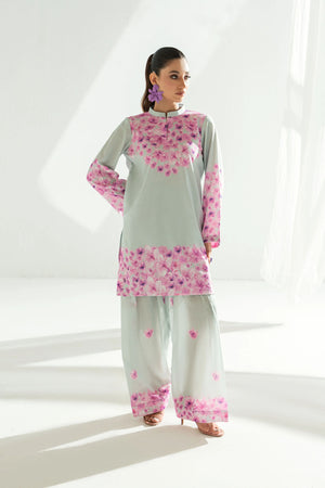 Crafted from lightweight, breathable pure lawn, the outfit features a relaxed silhouette that drapes beautifully, offering all-day comfort. Intricate lavender flower motifs bloom gracefully across the fabric, adding a feminine touch and nature-inspired beauty that elevates everyday dressing.